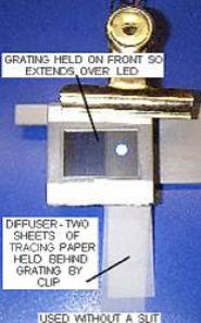 diffuser temporarily removed so the LED is exposed. This would be used for alignment of the mirror, then the grating and