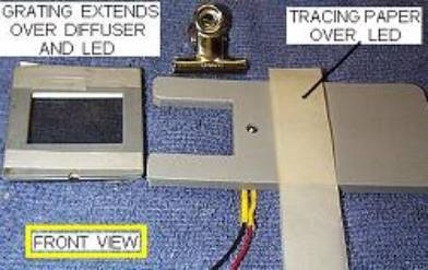 small piece of tape is placed over the rear of the LED. You could tape the grating in place but it