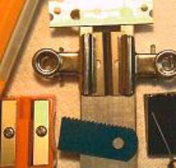 TOP - blade from a throwaway shaver. It can be popped out easily and has mounting